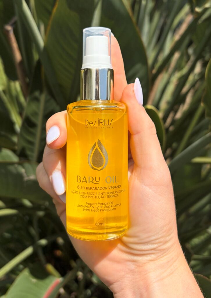 Cabelo sem brilho, com frizz e pontas duplas? O óleo de Baru devolve nutrição e disciplina aos fios.