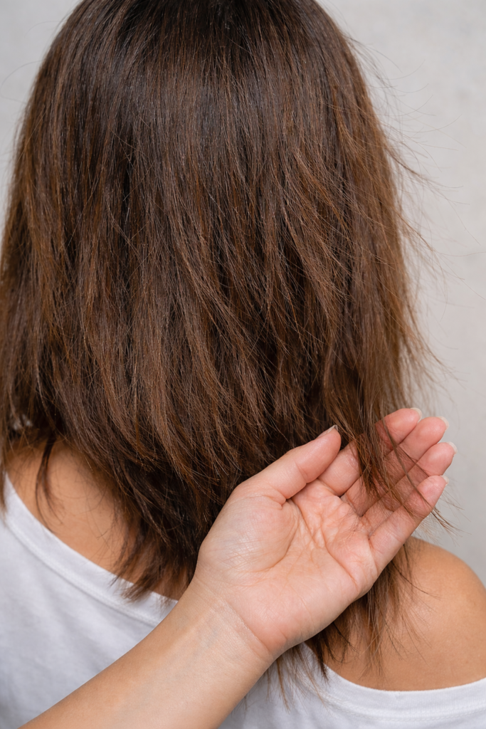 Quando o cabelo perde seus lipídios naturais, as cutículas ficam abertas e desprotegidas. O resultado é um fio mais vulnerável, difícil de controlar e com aspecto desalinhado.